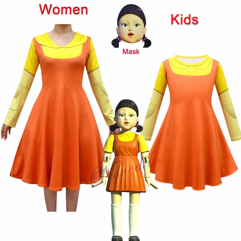 Squid Game Wood Girl Dress Squidgame 123 Robert Doll Cosplay Costume Kids Women Carnival Halloween Party Costume Mask Shopee Malaysia